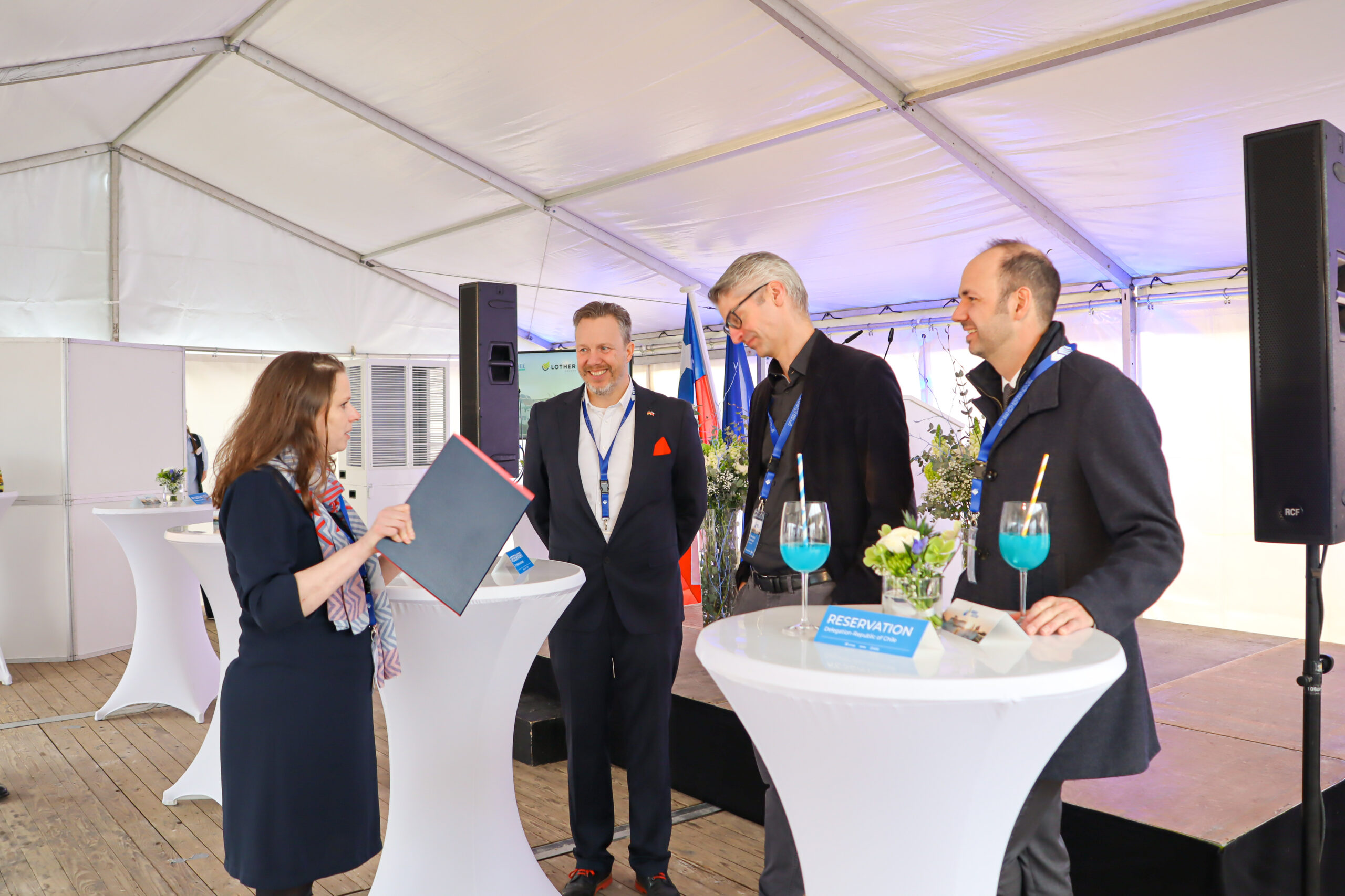 - Die jährliche Produktion von bis zu 75 Millionen Liter e-Fuels aus dem Chile Projekt Haru Oni aufzunehmen und zu verteilen (die eFuels GmbH und die LOTHER GRUPPE unterschrieben im Beisein des ersten Bürgermeisters die entsprechende Willensbekundung im August 2022 in Santiago de Chile).